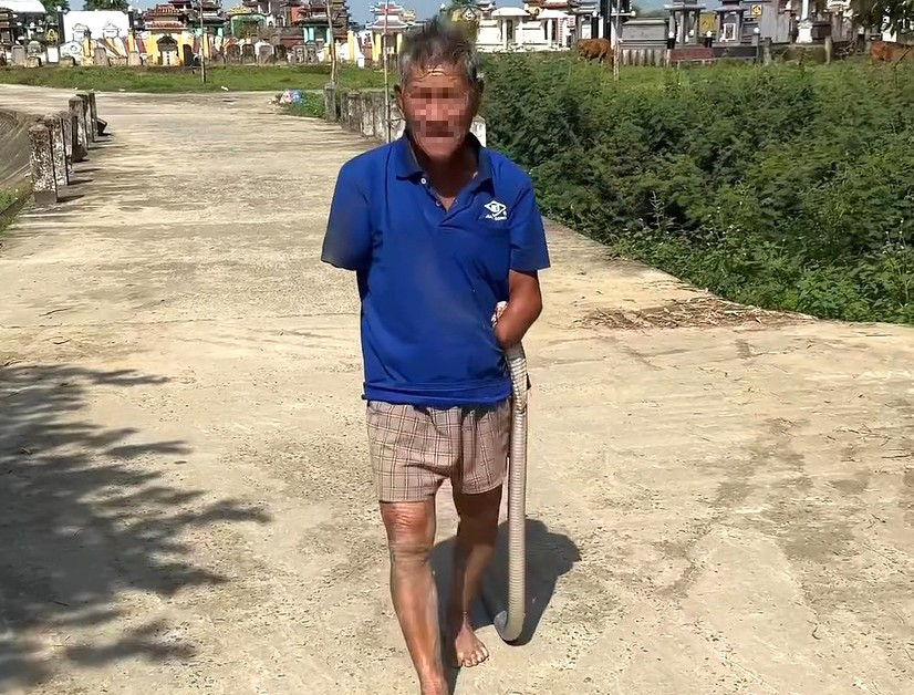 Cụ ông 79 tuổi ở Đà Nẵng bị rắn hổ mang cắn khi đi thăm ruộng. Do bị cụt hai tay, ông dùng chân dẫm và khuỷu tay kẹp con rắn mang về nhà, sau đó được đưa đi cấp cứu.