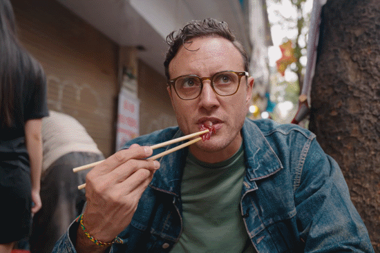 Món ăn ở vỉa hè TPHCM được đựng trong niêu, đun sôi sùng sục trên bếp than đỏ rực khiến hai vị khách Tây trầm trồ, nhận xét vị giống thịt gà nhưng ngon hơn nhờ nước xốt n...